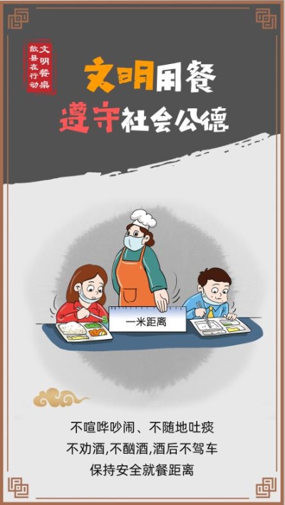 倡议书涵盖健康用餐、绿色用餐、节俭用餐、文明用餐4个方面,创作《文明餐桌我当先》快板歌曲及公益广告,图、文、声立体呈现, “飞入寻常百姓家”。