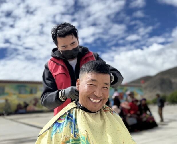 广场上,公益理发志愿者为老人、孩子公益理发,细致修剪让群众精神焕发;义诊专区医生提供健康咨询、血压测量等服务,发放免费药品与宣传资料,让农牧民在家门口享受优质医疗。